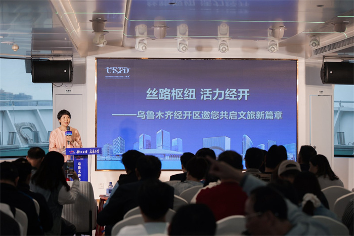 此次以“骄阳看雪 乌鲁木齐”为主题的上海专场推介会内容丰富、亮点纷呈:既有精彩的文旅资源展示,也有紧张的嘉宾抽奖环节;既有城市间文旅主管部门的签约,也有文旅企业的深度合作;更有乌鲁木齐市文旅宣传营销中心的授牌仪式,以及邮轮甲板上热闹的麦西来甫歌舞。